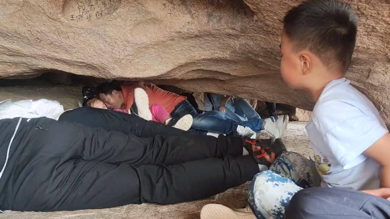 游客穿过“滚龙洞”(视频截图)