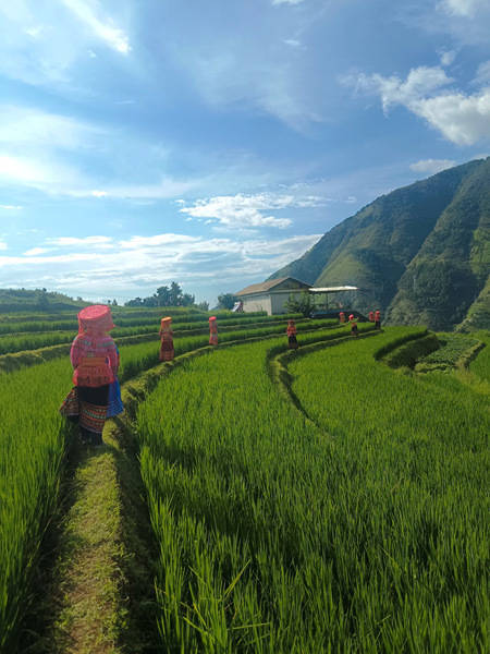 傈僳族村民迅游梯田。米易县新山傈僳族乡新山村委会供图